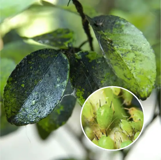 - a grayish or blackish coating on leaves, which is usually sooty mold